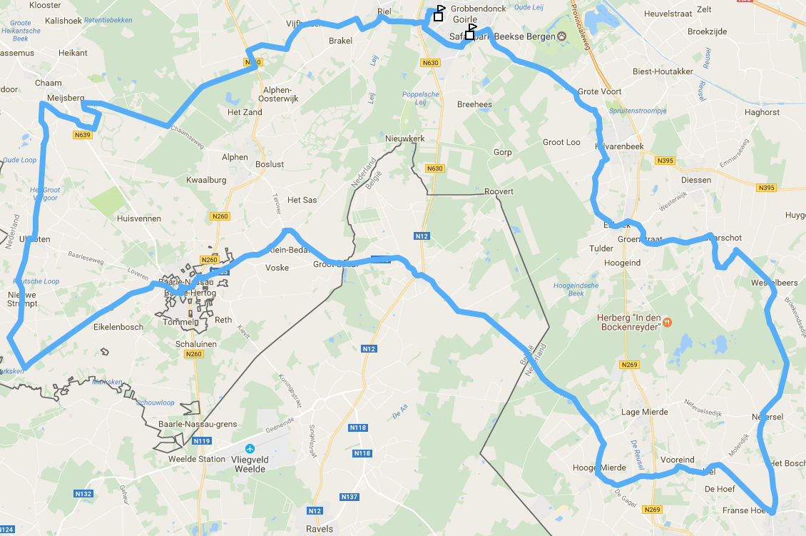 Bladel | Klassieke rit door de Kempen die ons via Hilvarenbeek, Oost-, West- en Middelbeers, Hoogeloon, Hapert, Reusel, Bladel, Baarle-Nassau, Baarle-Hertog, Hoogstraten, Ulicoten, Alphen en Riel terug naar Goirle brengt. Denk aan een geldig identiteitsbewijs! Evenement-informatie Startdatum zo 2 juli 2017 08:30 Aantal kilometers 91 Locatie De Deel Opslaan in Google-kalender Yahoo-kalender Opslaan Ical