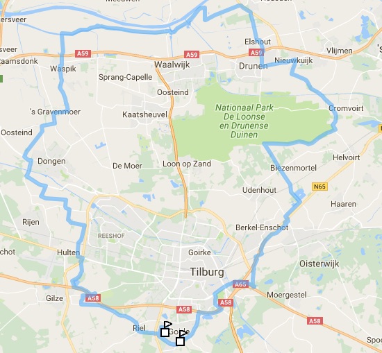 Maasroute | Toffe toertocht die ons via Tilburg-zuid, Berkel-Enschot, Biezenmortel, Cromvoirt, Nieuwkuijk, Oudheusden, Doeveren, Zomerdijk, Waspik, Oosteind, Dongen, Hulten, Gilze en Riel terug naar Goirle brengt. Evenement-informatie Startdatum za 18 mrt 2017 09:00 Aantal kilometers 94 Klassement Geen Locatie De Deel Opslaan in Google-kalender Yahoo-kalender Opslaan Ical