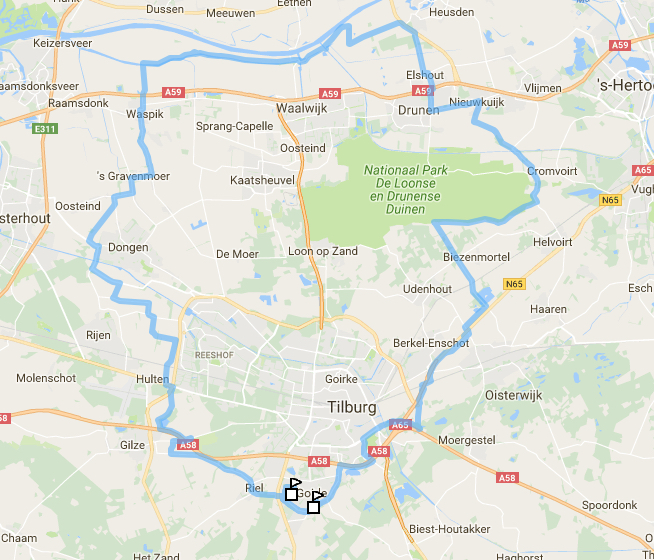 Maasroute Toffe toertocht die ons via Tilburg-zuid, Berkel-Enschot, Biezenmortel, Cromvoirt, Nieuwkuijk, Oudheusden, Doeveren, Zomerdijk, Waspik, Oosteind, Dongen, Hulten, Gilze en Riel weer terug naar Goirle brengt. Evenement-informatie Startdatum zo 20 aug 2017 08:30 Aantal kilometers 94 Locatie De Deel Opslaan in Google-kalender Yahoo-kalender Opslaan Ical