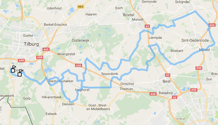 Nijnsel Toffe toertocht via Biest-Houtakker, Diessen, Haghorst, Oirschot, Best, Sint-Oedenrode richting Veghel maar net daarvoor terugdraaiend tegen de klok in naar Olland, Liempde, Spoordonk, Moergestel, Biest-Houtakker en terug naar Goirle. Evenement-informatie Startdatum za 19 aug 2017 08:30 Aantal kilometers 105 Locatie De Deel Opslaan in Google-kalender Yahoo-kalender Opslaan Ical