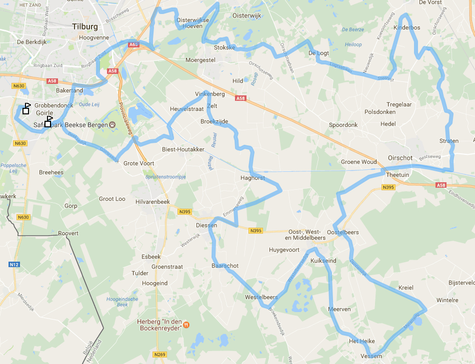 Toffe toerrit via Tilburg, Enschot, Oisterwijk, over de Logtsebaan naar Oirschot, Oostelbeers, Vessem, Diessen, Haghorst, Biest-Houtakker en terug naar Goirle. |